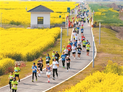 3月29日,2026年昆山城市業(yè)余聯(lián)賽十公里路跑比賽(陸家站)暨陸家未來智慧田園彩虹跑,在江蘇省昆山市陸家鎮(zhèn)未來智慧田園活力開跑。這場融合專業(yè)路跑競速與親子彩虹狂歡的運動派對,共吸引來自全國各地近600名跑者齊聚一堂,用腳步丈量春日鄉(xiāng)野。圖為選手們在花田暢跑。袁新宇 攝