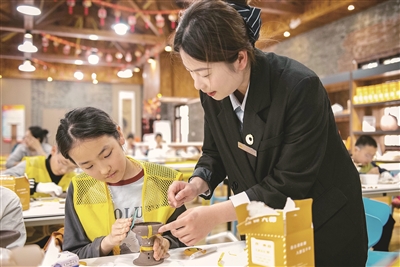 4月2日,安徽省含山縣凌家灘國家考古遺址公園迎來學(xué)生研學(xué)實(shí)踐活動(dòng)。小學(xué)生們在講解員帶領(lǐng)下,參觀遺址博物館、觀看4D電影,參與考古現(xiàn)場模擬發(fā)掘、模擬文物修復(fù)等體驗(yàn)活動(dòng),在實(shí)踐中拓寬眼界、增長見識(shí)。圖為學(xué)生正在現(xiàn)場模擬文物修復(fù)。歐宗濤 攝