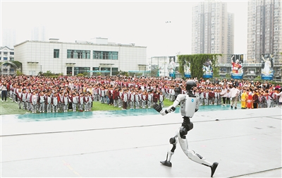 4月8日,重慶市永川區(qū)紅旗小學(xué)“綠茵逐夢,活力全開”第46屆春季田徑運(yùn)動(dòng)會(huì)開幕式上,萌趣十足的智能機(jī)器人驚艷亮相。智能機(jī)器人隨著音樂節(jié)奏靈活舞動(dòng),精準(zhǔn)完成轉(zhuǎn)身、臥倒等動(dòng)作,配合歡快的音樂旋律,為師生們帶來了一場科技與活力交融的視覺盛宴。圖為智能機(jī)器人表演。陳仕川 攝