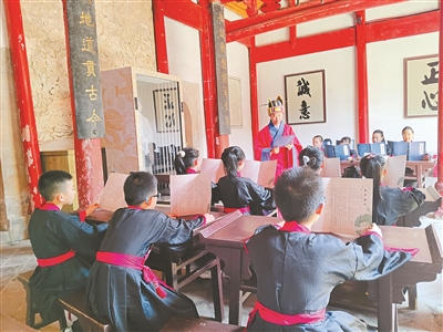 學(xué)生在興賢書院誦讀《朱子家訓(xùn)》。楊林川 攝