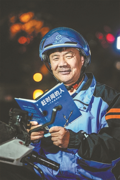 2019年夏天,王計(jì)兵投身外賣行業(yè)。日均配送40余單,接觸著形形色色的人和事。為了和時(shí)間賽跑,他開始用手機(jī)語音創(chuàng)作,喜歡接去鄉(xiāng)下的遠(yuǎn)單,“路上回程在一個(gè)小時(shí)以上,很放松”。王計(jì)兵的許多詩歌就是在路上寫下的,2020年,《趕時(shí)間的人》被轉(zhuǎn)發(fā)到微博,獲得2000萬點(diǎn)擊量。不久后,有出版社聯(lián)系王計(jì)兵出詩集,2023年2月,他收到了第一本自己的詩集。“我愛人說,拆包裝時(shí),我的手是抖的,說話的聲音也是抖的?!?/FONT>