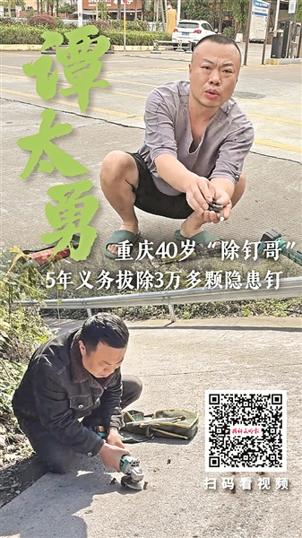 近日,一位網(wǎng)名叫“小勇哥”的男子在網(wǎng)絡上走紅。他叫譚太勇,一位來自重慶市石柱土家族自治縣沿溪鎮(zhèn)陡巖村的普通務工者。他在過去的五年里,利用業(yè)余時間,在重慶、貴州、廣東、福建等地的城鄉(xiāng)道路上,義務清除了3萬多顆可能傷人的地釘,被大家親切地稱為“除釘哥”。
